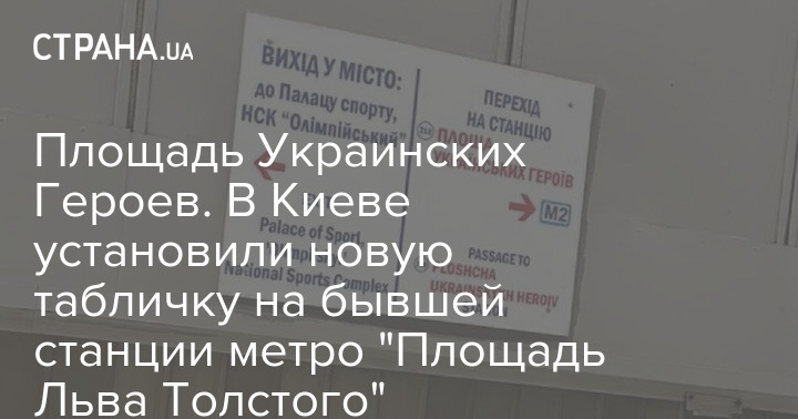 У Києві вже змінили табличку на перейменованій станції метро "Площа Льва Толстого". Тепер вона називається "Площа Українських Героїв".