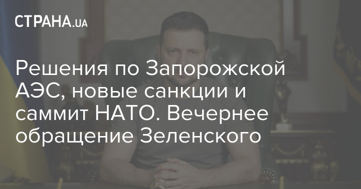 Рішення щодо Запорізької АЕС, нові санкції та саміт НАТО. Вечірнє звернення Зеленського