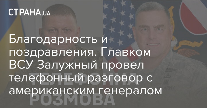 Головнокомандувач ЗСУ Валерій Залужний провів телефонну розмову з головою Об'єднаного комітету начальників штабів США генералом Марком Міллі.