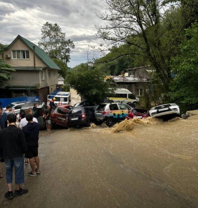 Загалом погода у Чорноморському регіоні погіршилась. Сьогодні вночі затопило вулиці російського Сочі. Через сильні зливи потоком води там знесло припарковані машини.