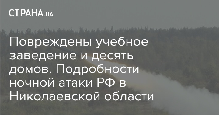Пошкоджено навчальний заклад та двадцять будинків. Подробиці нічної атаки РФ у Миколаївській області