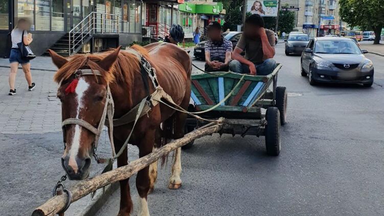 У Рівному патрульна поліція виписала штраф чоловікові, який керував кінною підводою, за розпиття спиртного прямо на дорозі під час руху.
