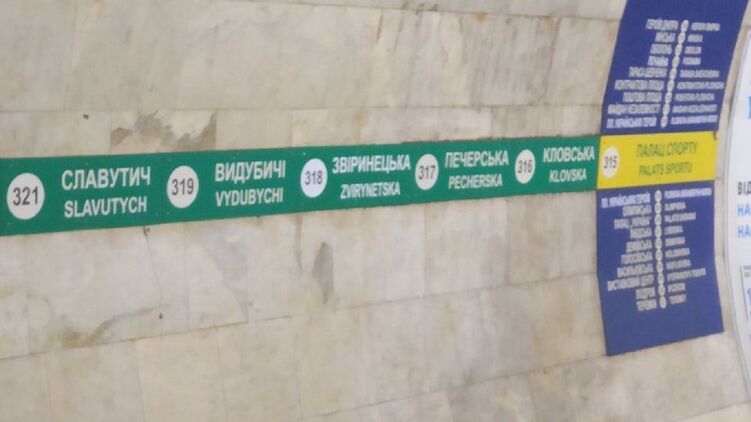 У Київському метро продовжують міняти вивіски перейменованих станцій. Назву "Дружби народів" на зеленій гілці вже замінили на "Звіринецьку".