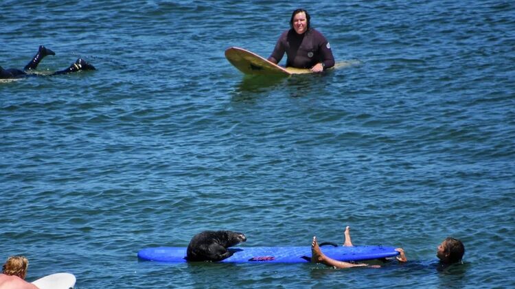 Каліфорнійська видра потрапила до заголовків американських газет через свою загарбницьку поведінку щодо серфінгістів, у яких вона відбирала дошки, щоб похитатися на хвилях.