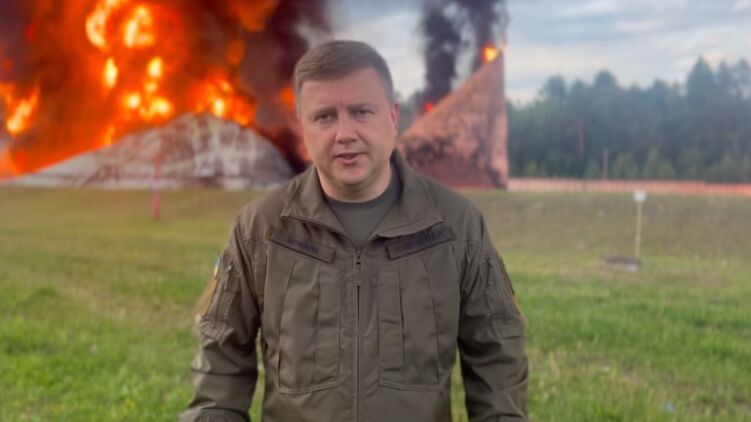 Голова Рівненської ОВ Віталій Коваль повідомив, що зруйновано нафтобазу під Дубно. Фото: скрін з відео