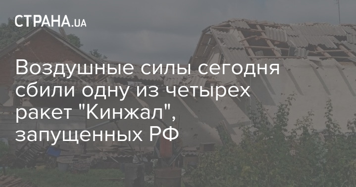 Повітряні сили сьогодні збили одну з чотирьох ракет "Кинжал", запущених РФ