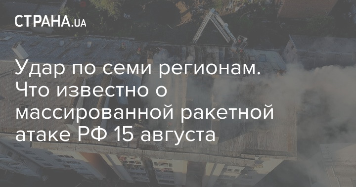 Вночі 15 серпня РФ завдала чергового масованого ракетного удару по території України. Чотири особи загинули, 16 поранено, пошкоджено громадянську інфраструктуру, житлові будинки та підприємства.