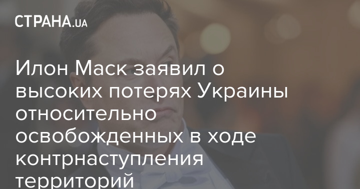 Американський підприємець Ілон Маск заявив, що втрати України дуже високі щодо площі звільнених територій.