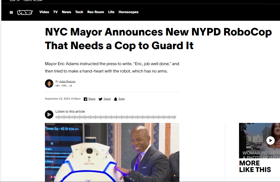 Робот K5 здійснюватиме нічні патрулі на центральній станції метро Юніон-Сквер у США. На час випробувань, які триватимуть два місяці, йому заборонено виїжджати на платформу, записувати звук та використовувати технологію розпізнавання облич. Крім того, робот пересуватиметься у супроводі живого поліцейського.