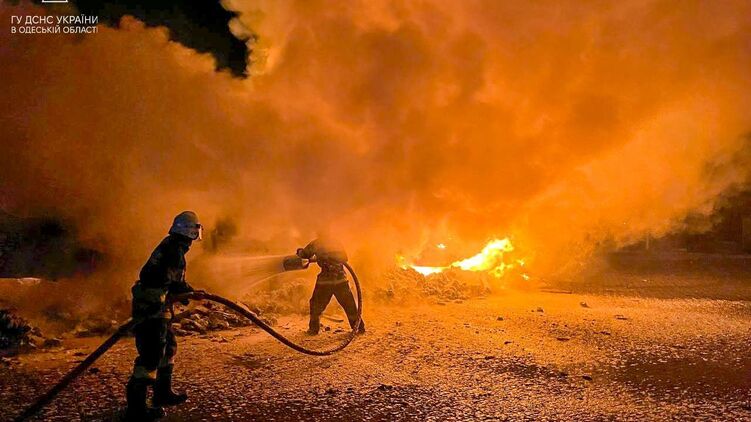 Рятувальники показали кадри ліквідації пожежі внаслідок російських ударів на Одещині