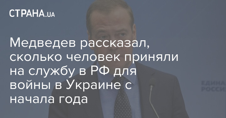 Таку цифру озвучив заступник голови Ради безпеки РФ Дмитро Медведєв на нараді з питань доукомплектування ЗС РФ.