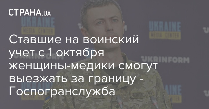 Жінки-медики, які стали на військовий облік з 1 жовтня, зможуть виїжджати за кордон - Держприкордонслужба