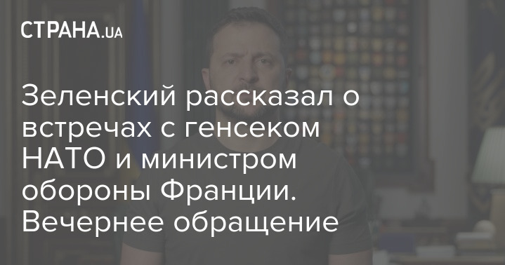 Зеленський розповів про зустрічі з генсеком НАТО та міністром оборони Франції. Вечірнє звернення