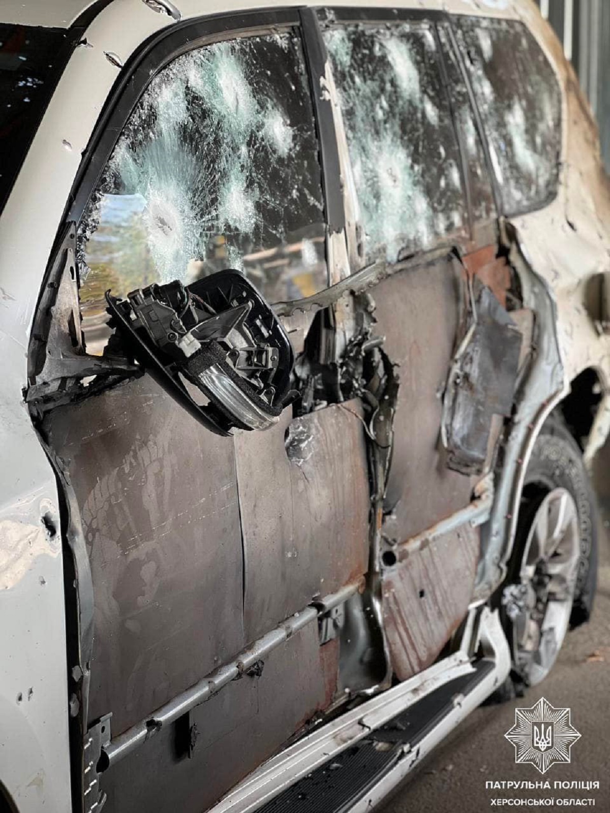 Він публікує фото службового автомобіля, на якому загиблий та його колега потрапили під вогонь артилерії.