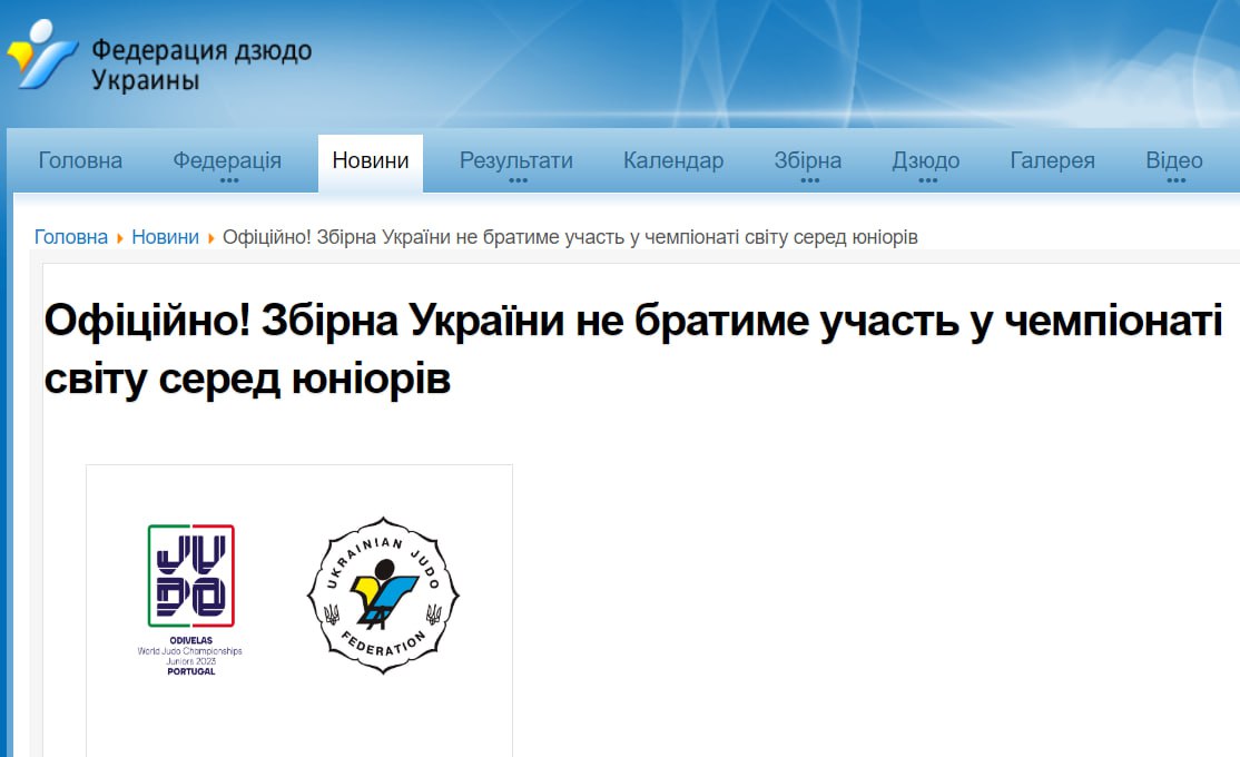 Про це заявила Федерація дзюдо України на своєму сайті.