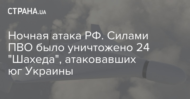 "Силами та засобами Повітряних Сил у взаємодії з ППО Сил оборони України знищено 24 "Shahed-131/136" у межах Одеської, Миколаївської та Кіровоградської областей", - повідомили у Повітряних силах.