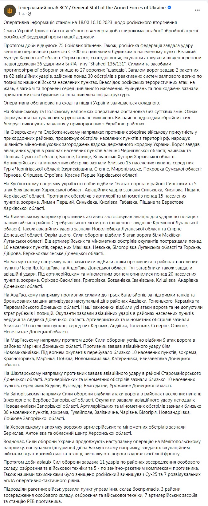 20.18 Нове вечірнє зведення Генштабу ЗСУ.