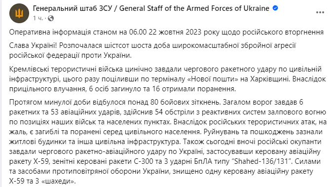 Війна в Україні триває вже 606-й день. Ми стежимо за останніми новинами та ключовими подіями 22 жовтня 2023 року в онлайні, що оновлюється.