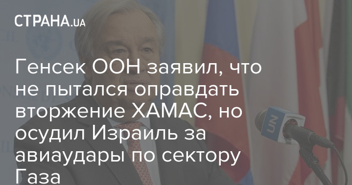 Генсек ООН Антоніу Гутерріш заявив, що не намагався виправдати вторгнення ХАМАСу до Ізраїлю. Але й Ізраїль за масові авіаудари за сектором Газа засуджує.