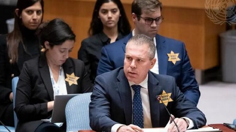 "Деякі країни-члени нічого не засвоїли за минулі 80 років. Ми носитимемо зірку доти, доки ви не засудите звірства ХАМАС і не вимагатимете негайного звільнення наших заручників", - сказав постпред Ізраїлю при ООН Гілад Ердан.