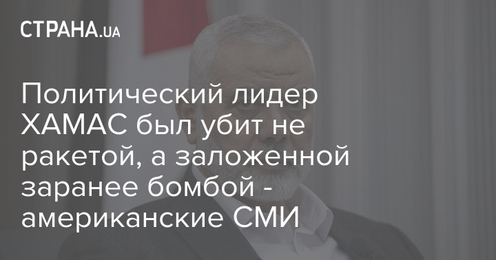 Політичного лідера ХАМАС Ісмаїла Ханію було вбито не внаслідок ізраїльського удару бомбою або ракетою, а внаслідок вибуху бомби, закладеної заздалегідь у гостьовому будинку в Тегерані, де він зупинився.