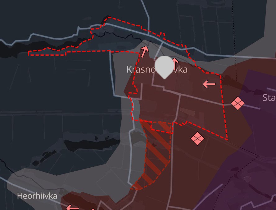 "Після трьох з половиною місяців інтенсивних боїв російська армія вторгнення захопила всі відповідні частини міста Красногорівка (раніше з населенням 16 000 жителів) у Донецькій області. Наступ розпочався 15 квітня з відродження "танків-черепів", що широко обговорювалися, - написав він і опублікував карту.