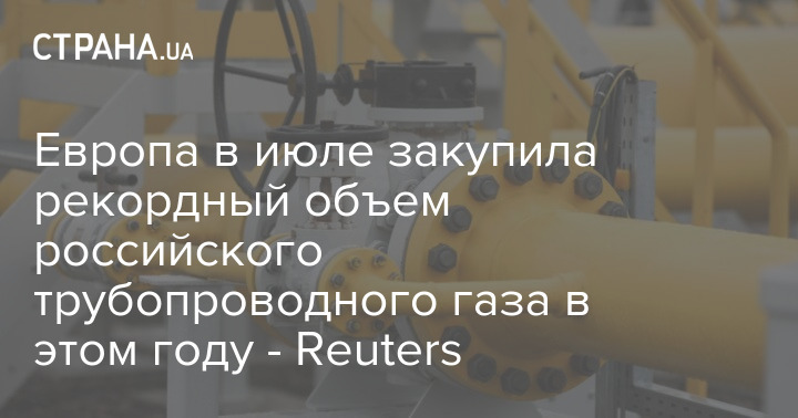 Європа у липні закупила цьогорічний рекордний обсяг російського трубопровідного газу. Середньодобові постачання у липні були на 5,7% більше порівняно з роком раніше та на 12% – порівняно з червнем.