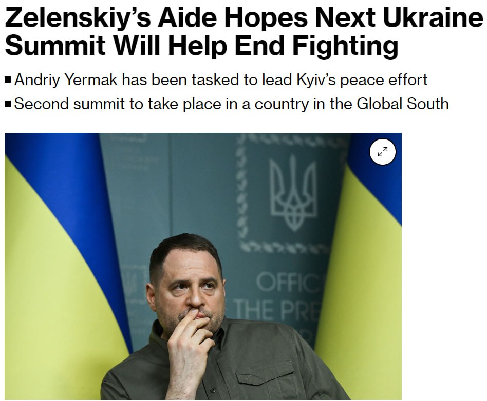 Агентство повідомляє, що організацію саміту доручено саме Єрмаку. Його завдання – "досягнення справедливого мирного врегулювання після того, як перша зустріч у Швейцарії у червні не змогла залучити на свій бік ключові країни глобального Півдня".
