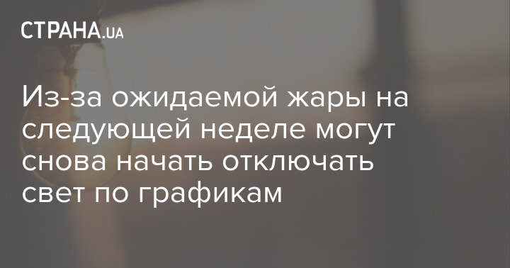 Через очікувану спеку наступного тижня можуть знову почати відключати світло за графіками