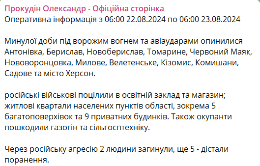 08:10 Минулої доби на Херсонщині через російську агресію 2 людини загинули, ще 5 - отримали поранення.