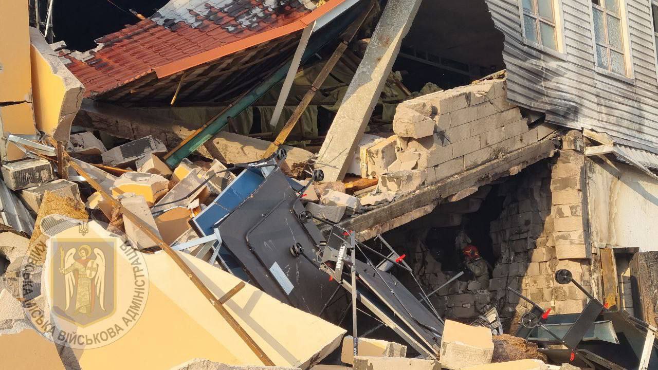У будівлі обвалилися дві кутові стіни та міжповерхове перекриття.