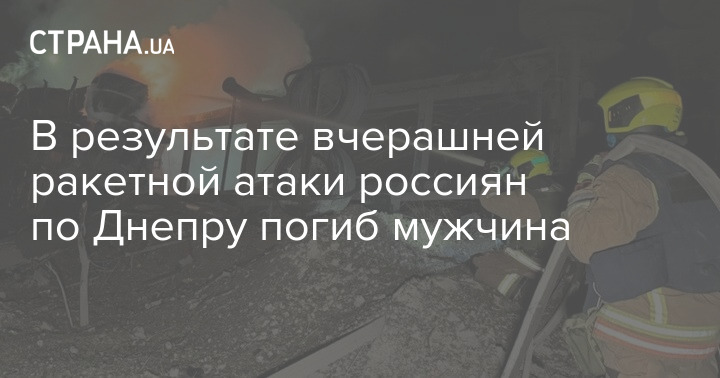 Внаслідок вчорашньої ракетної атаки росіян по Дніпру загинув 51-річний чоловік. Шестеро людей постраждали, з них один 37-річний чоловік залишається в лікарні.