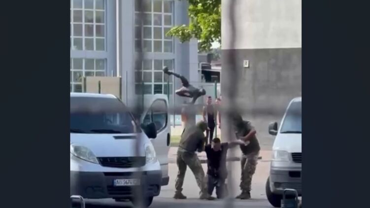 У ролику можна побачити, що військкоми застосовують фізичну силу до чоловіка.