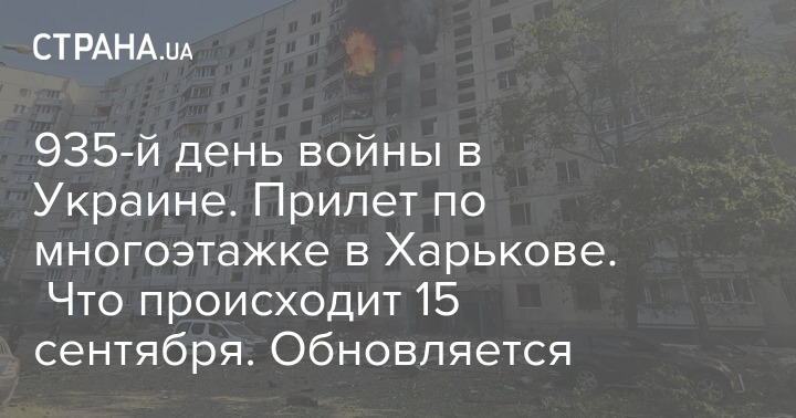 У неділю, 15 вересня, в Україні триває 935-й день війни з Росією.