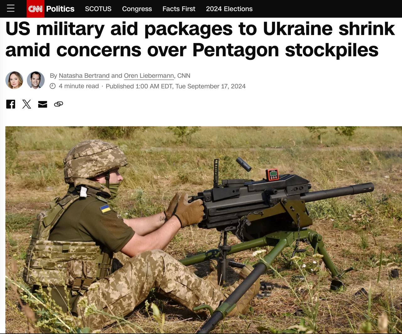За даними видання, США вже кілька місяців стали відправляти Україні менше військової допомоги, тому що скоротилися їхні власні запаси, наприклад, 155-мм боєприпасів і ракет для Patriot.