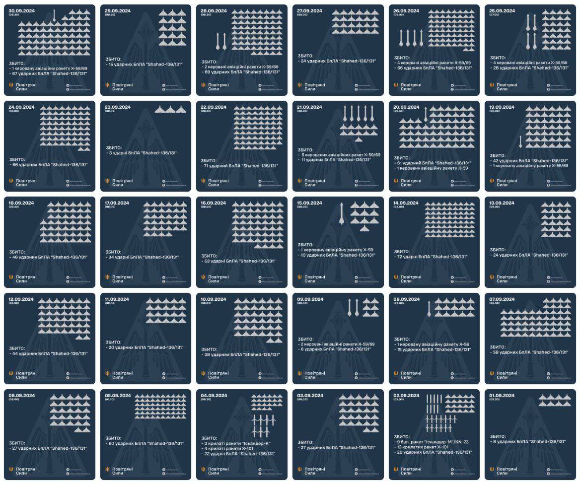 Тим часом, сьогодні АрміяInform з посиланням на дані Повітряних сил ЗСУ повідомляла, що вересень став першим місяцем за всю війну, коли росіяни щодня атакували територію України "Шахедами".