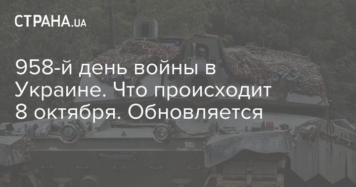 У вівторок, 8 жовтня, в Україні триває 958-й день війни з Росією.