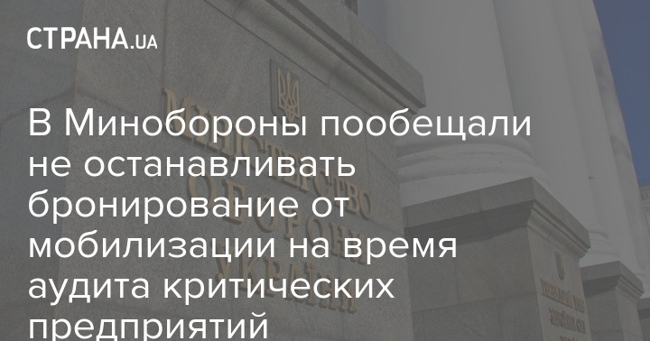 У Міністерстві оборони України заявили, що на час аудиту критичних підприємств бронювання працівників не зупинятимуть.