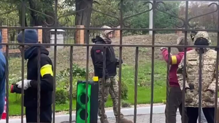 На відео видно, що хтось відкрив вогонь, мабуть, із травмату та розпорошував газ.