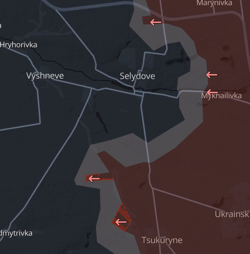 Також Deep State підтверджує просування російських військ на схід від Курахового захоплення більшості Максимільянівки. Росіяни стверджують, що село захоплене повністю.