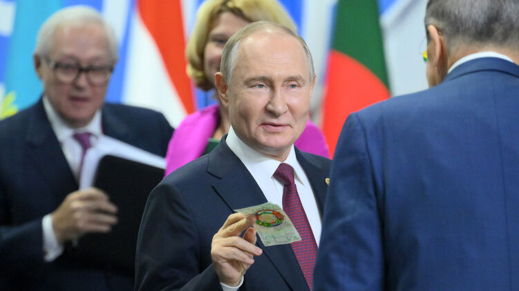На саміті БРІКС, що відкрився у Казані 22 жовтня і завершиться сьогодні, президенту Росії Володимиру Путіну показали символічну купюру організації номіналом 50 мільйонів.