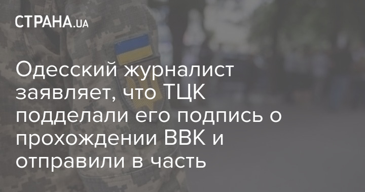 Одеський журналіст Олександр Тодоров заявив про свою примусову мобілізацію всупереч тому, що не пройшов військово-лікарську комісію. Він стверджує, що його підпис на протоколі про проходження ВЛК підробили співробітники Київського ТЦК Одеси, після чого відправили його до військової частини.