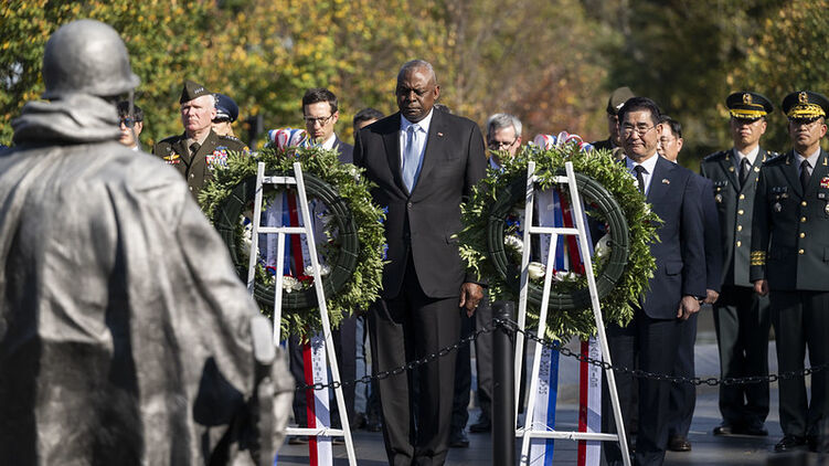 Остін (у центрі) написав статтю про Україну. Фото: x.com/SecDef