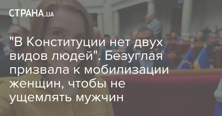 "У Конституції немає двох видів людей. Зараз у нас незаконна дискримінація чоловіків. Крім того, якщо мобілізуватимуть жінок, то чоловіків мобілізуватимуть менше — це вам, чоловіки, один із факторів, чому потрібно підтримувати мобілізацію співгромадянок", - написала Безугла.