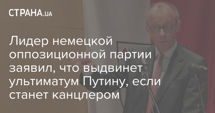 Лідер найбільшої опозиційної партії Німеччини "Християнсько-демократичний союз" Фрідріх Мерц заявив, що якщо стане канцлером Німеччини, висуне голові РФ Володимиру Путіну ультиматум щодо України.