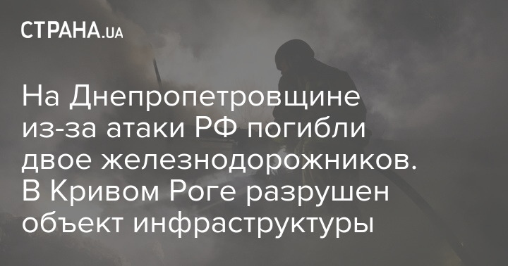 На Дніпропетровщині через атаку РФ загинули двоє залізничників. У Кривому Розі зруйновано об'єкт інфраструктури