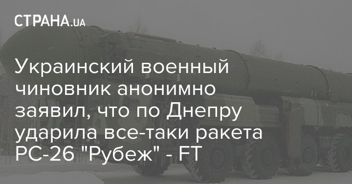 Український військовий чиновник анонімно заявив, що по Дніпру вдарила ракета РС-26 "Рубіж" - FT