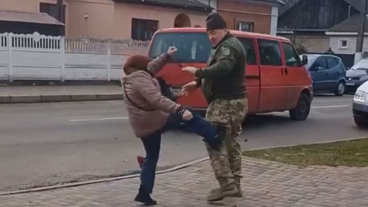 Била ногами і хотіла смерті від кулі. З'явилося відео, як на Рівненщині жінка накинулася на військкома