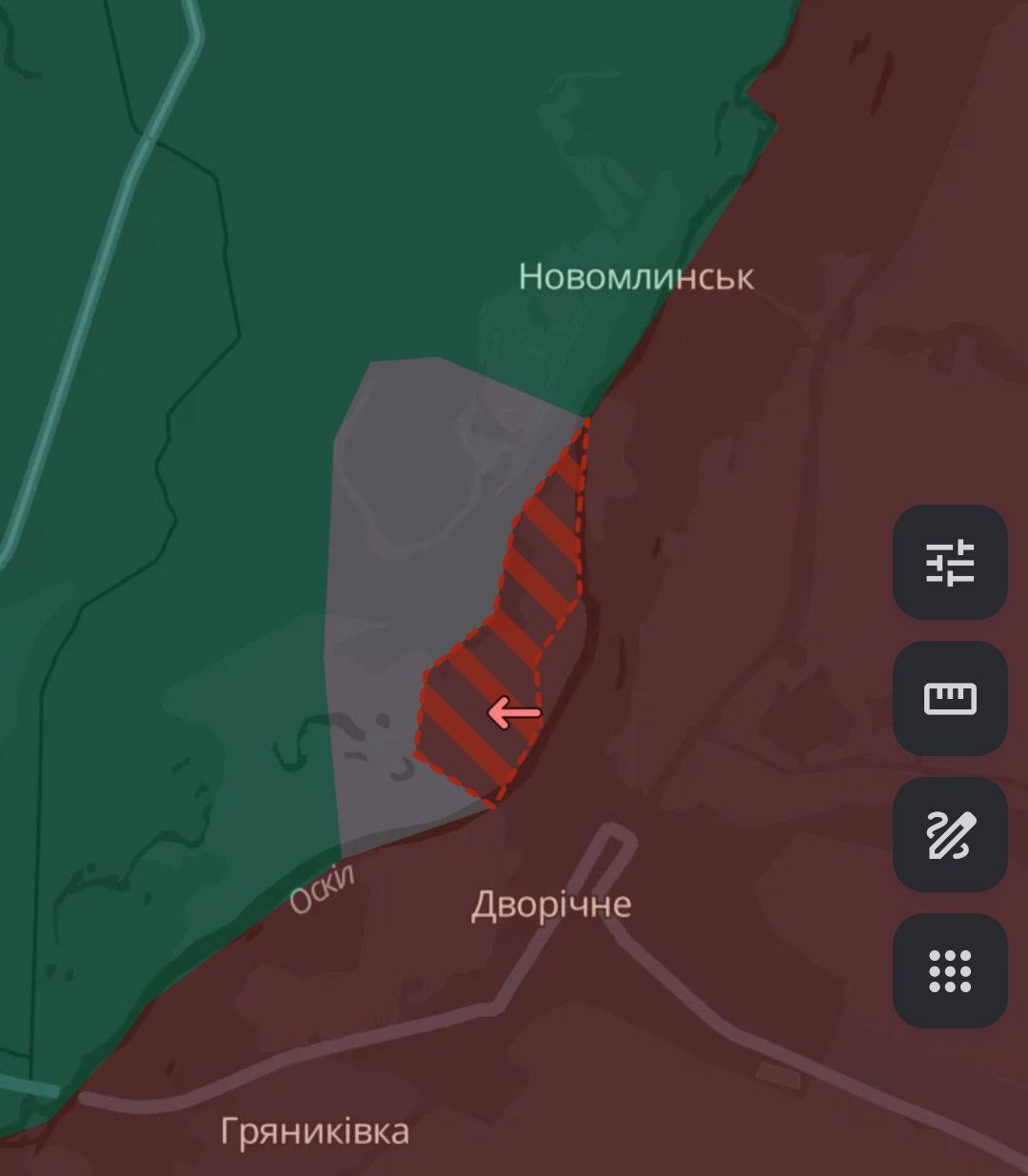 7.57 Росіяни розширили свій плацдарм на лівому березі річки Оскол на північ від Куп'янська.