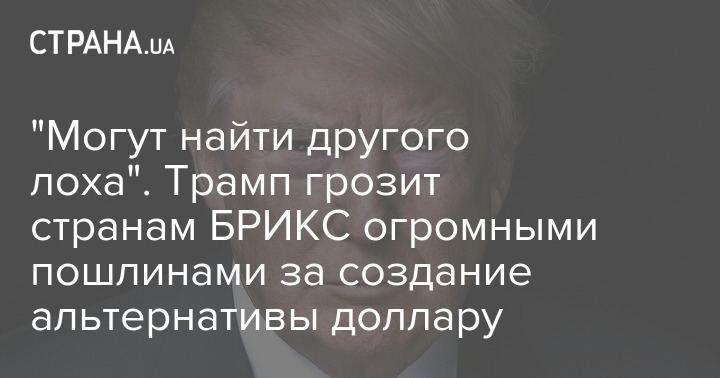 "Ми вимагаємо від цих країн зобов'язання не створювати нову валюту БРІКС і не підтримувати жодну іншу валюту, щоб замінити могутній долар США, інакше вони зіштовхнуться зі 100% митами і повинні будуть попрощатися з продажами в чудову економіку США. Вони можуть піти і знайти іншого "лоха"! Немає жодних шансів, що БРІКС замінить долар США у міжнародній торгівлі, та Будь-яка країна, яка спробує це зробити, має помахати Америці рукою", – пише новообраний президент Сполучених Штатів.
